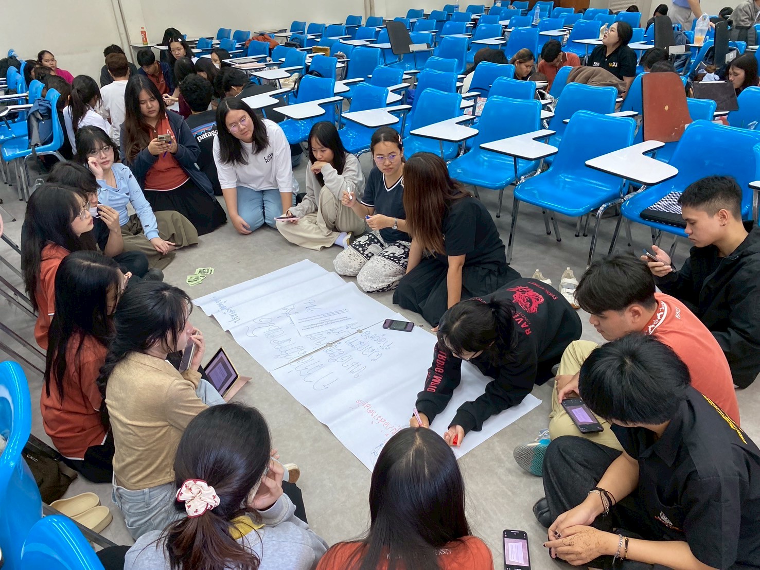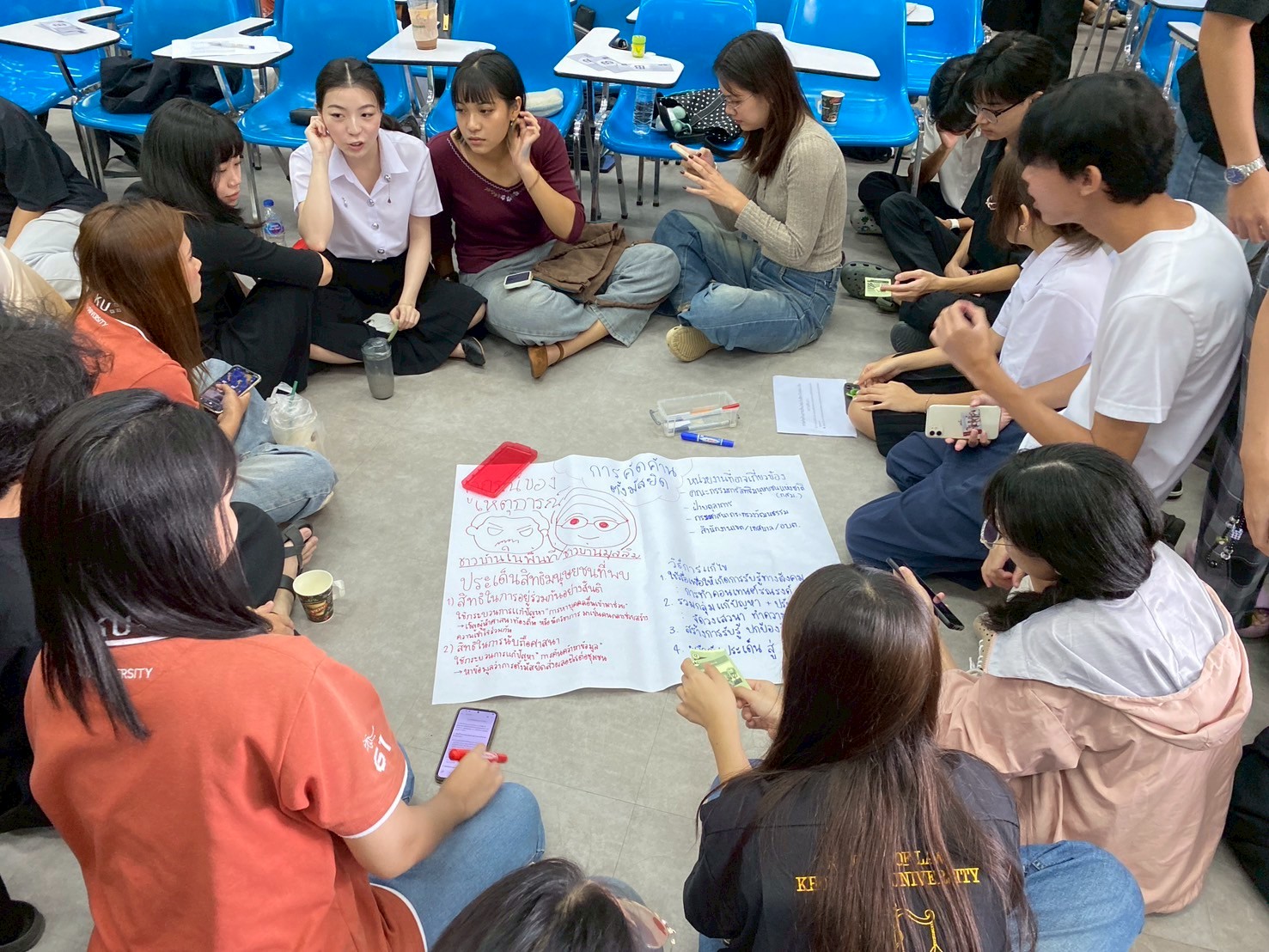 เมื่อวันที่ 9-10 กันยายน 2568 ที่คณะนิติศาสตร์ มหาวิทยาลัยขอนแก่น เจ้าหน้าที่สำนักงานคณะกรรมการสิทธิมนุษยชนแห่งชาติพื้นที่ภาคตะวันออกเฉียงเหนือ (สำนักงาน กสม. พื้นที่ภาคตะวันออกเฉียงเหนือ) เป็นวิทยากรเพื่อจัดกระบวนการเรียนรู้ เรื่อง “หน้าที่พลเมืองดีตามระบอบประชาธิปไตยและสิทธิมนุษยชน ในศตวรรษที่ 21 ” โดยมุ่งเน้นกระบวนการกลุ่มและการเรียนรู้ผ่านการแลกเปลี่ยนความคิดเห็นร่วมกัน เกี่ยวกับคุณค่าร่วมของสิทธิมนุษยชนและระบอบประชาธิปไตย ตลอดจน สิทธิ เสรีภาพ หน้าที่ ซึ่งปรากฏตามรัฐธรรมนูญ โดยคำนึงถึงมิติหน้าที่ของการเป็นพลเมืองที่ดีตามหลักการสิทธิมนุษยชนและการใช้เครื่องมือของพลเมืองตื่นรู้ (Active Citizen) ในศตวรรษที่ 21 ในกิจกรรมกลุ่มเพื่อร่วมกันคิด วิเคราะห์ และหาแนวทางแก้ปัญหาที่หลากหลายต่อกรณีศึกษาด้านสิทธิมนุษยชนที่เกิดขึ้นจริงจำนวน 12 กรณี ในพื้นที่จังหวัดขอนแก่น และเพื่อให้นักศึกษาที่เข้าร่วมกิจกรรมเกิดความรู้ความเข้าใจและเกิดทักษะการเป็นพลเมืองที่ดีตามระบอบประชาธิปไตยและสิทธิมนุษยชน โดยมุ่งให้เกิดจิตสำนึกความรับผิดชอบต่อหน้าที่และการมีส่วนร่วมเพื่อเป็นส่วนหนึ่งในการแก้ปัญหาสิทธิมนุษยชนและปัญหาเชิงโครงสร้างของสังคมโดยมีเป้าหมายเพื่อให้เกิดความเป็นธรรมอย่างยั่งยืนในท้ายที่สุด ทั้งนี้ กลุ่มเป้าหมายของที่เข้าร่วมเรียนรู้ในกิจกรรมในครั้งนี้ ได้แก่ นักศึกษา ชั้นปีที่ 2 ที่กำลังศึกษารายวิชากฎหมายมหาชน ของคณะนิติศาสตร์ มหาวิทยาลัยขอนแก่น จำนวนมากกว่า 550 คน