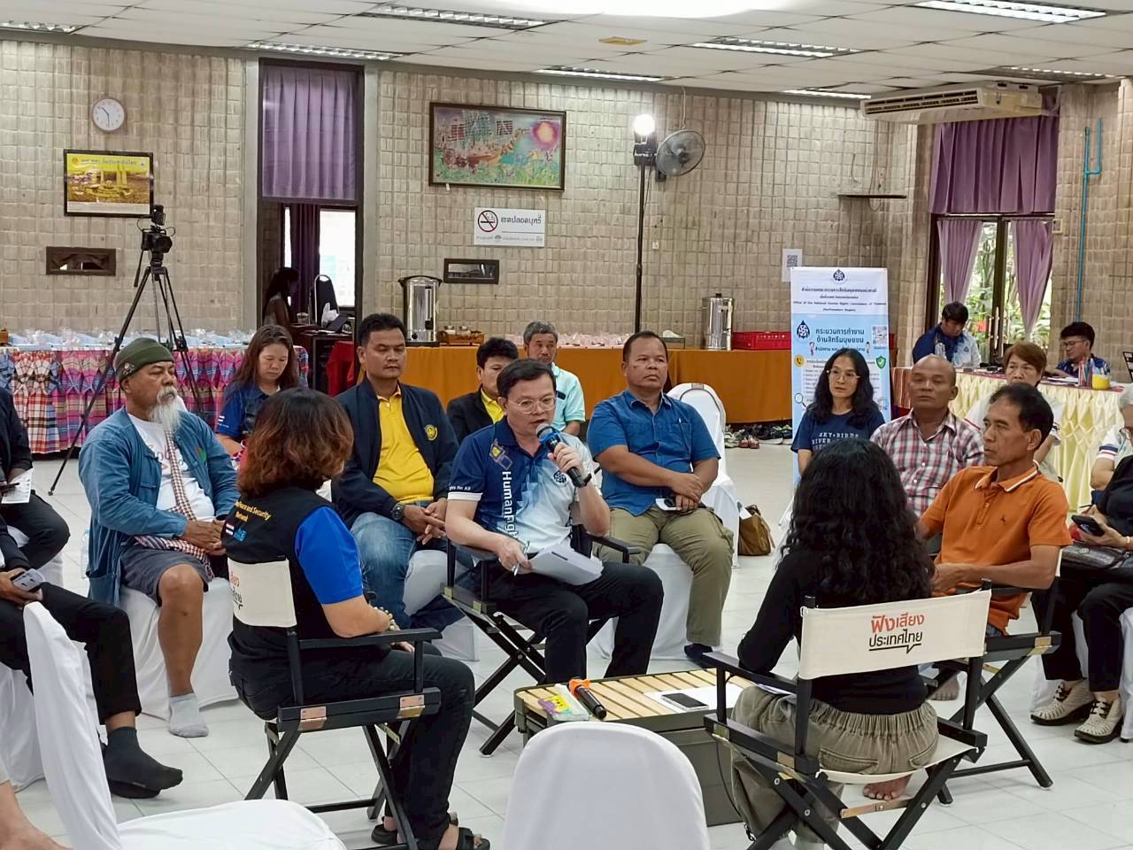 เมื่อวันที่ 22-23 กันยาน 2568 สำนักงานคณะกรรมการสิทธิมนุษยชนแห่งชาติพื้นที่ภาคตะวันออกเฉียงเหนือ (สำนักงาน กสม. พื้นที่ภาคตะวันออกเฉียงเหนือ) โดยการประสานความร่วมมือกับ สำนักเครือข่ายและการมีส่วนร่วมสาธารณะ ThaiPBS จัดเวที ฟังเสียงประเทศไทย เพื่อประมวลสถานการณ์สิทธิมนุษยชนและรับฟังข้อเสนอแนะจากเหตุการณ์ปะทะกันในพื้นที่แนวชายแดนไทย – กัมพูชา ณ จังหวัดศรีสะเกษและจังหวัดสุรินทร์ โดยรูปแบบเวทีเป็นการชวนผู้แทนชุมชน ชาวบ้านที่ได้รับผลกระทบ และผู้มีส่วนร่วมในพื้นที่ทั้ง นักวิชาการ หน่วยงานภาครัฐ ภาคเอกชน และเครือข่ายภาคประชาชน มาร่วมวงสนทนา เพื่อระดมความเห็น ทบทวนหาบทเรียน การปฏิบัติงานและการบริหารจัดการในประเด็นสิทธิมนุษยชน วิเคราะห์ผลกระทบ และออกแบบแนวทางคุ้มครองสิทธิมนุษยชนคนชายแดนอย่างเป็นรูปธรรม ภายใต้บริบทชุมชน ความหลากหลายทางชาติพันธุ์ และกรอบกฎหมายที่เกี่ยวข้องเพื่อให้ทุกเสียงในพื้นที่ชายแดนมีส่วนร่วมและได้รับการคุ้มครองอย่างแท้จริง และเพื่อนำข้อมูลไปใช้ประกอบการจัดทำรายงานผลการประเมินสถานการณ์ด้านสิทธิมนุษยชน และพัฒนาเป็นข้อเสนอแนะเชิงนโยบายเพื่อแก้ไขปัญหาในพื้นที่ต่อไป โดยมีผู้เข้าร่วมจากทั้ง 2 เวทีในจังหวัดศรีสะเกษ และจังหวัดสุรินทร์ มากกว่า 100 คน และมีประเด็นการพูดคุยและข้อเสนอที่น่าสนใจ ดังนี้
