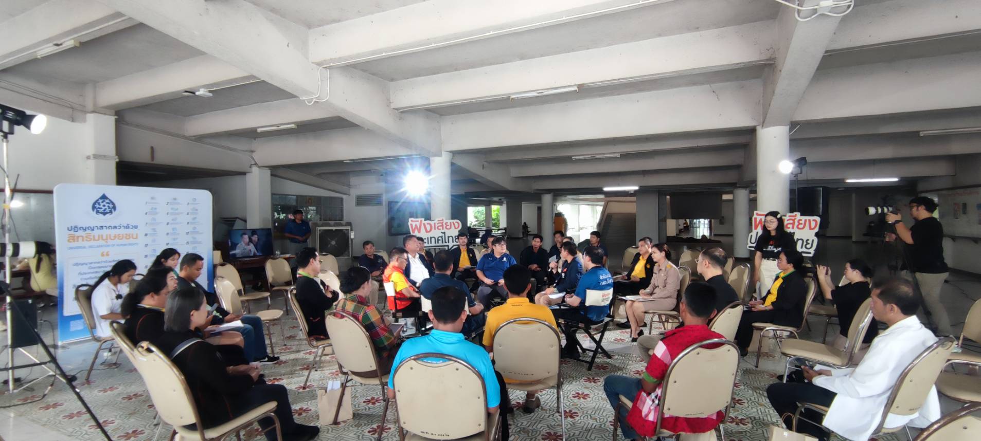 สำนักงาน กสม. พื้นที่ภาคอีสานร่วมกับ ThaiPBS จัดเวที ฟังเสียงประเทศไทย เพื่อประมวลสถานการณ์สิทธิมนุษยชนและรับฟังข้อเสนอแนะจากเหตุการณ์ปะทะกันในพื้นที่แนวชายแดนไทย – กัมพูชา ณ จ.ศรีสะเกษ และจ.สุรินทร์