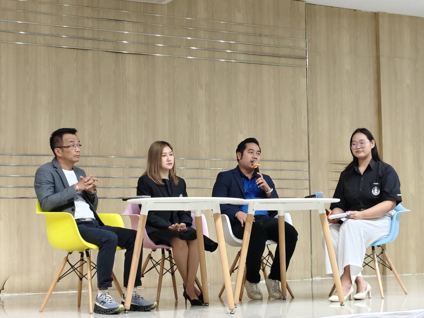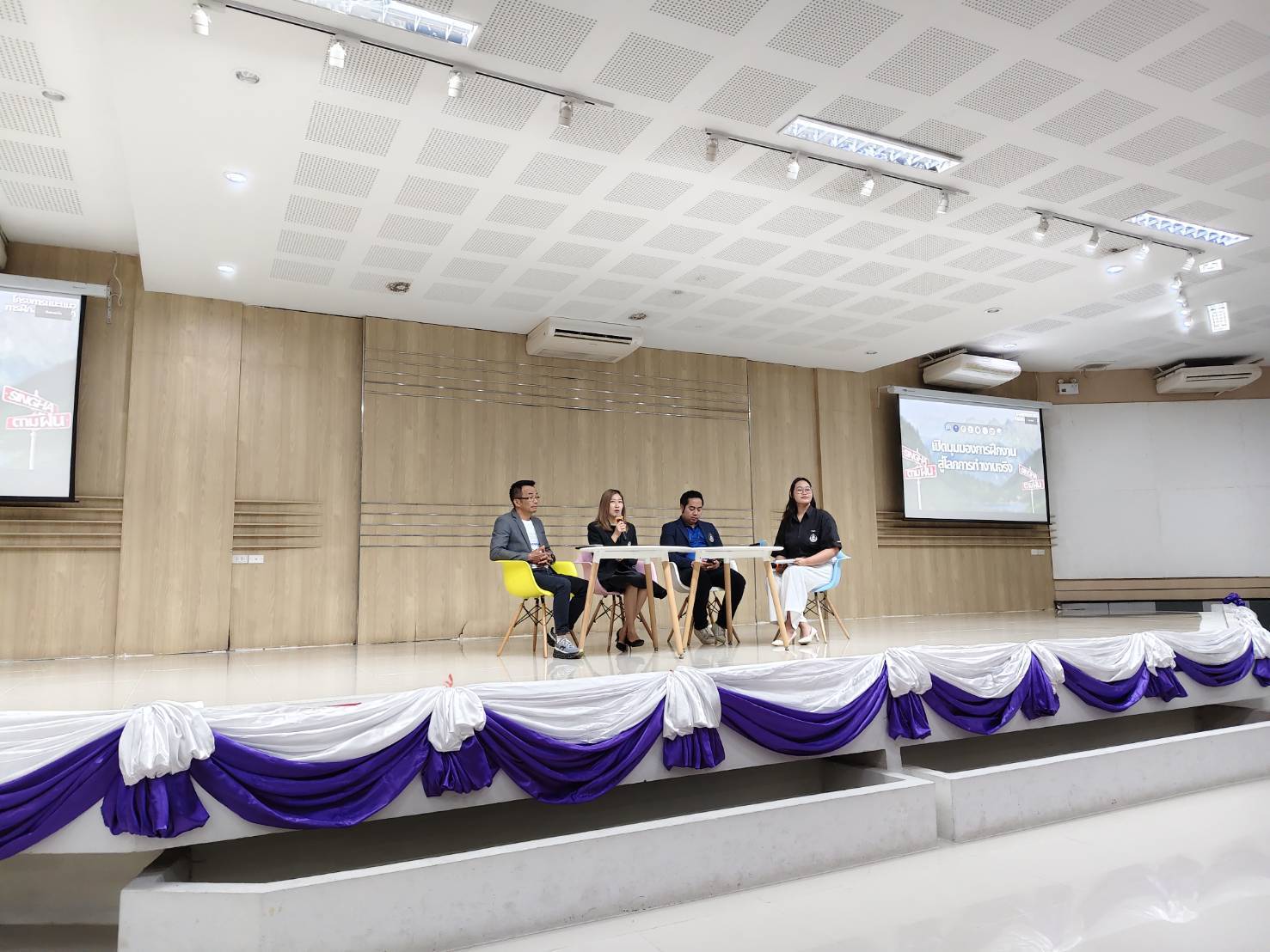 นอกจากนี้ในเวทีเสวนาแต่ละหน่วยงานยังได้ร่วมแลกเปลี่ยนและเน้นย้ำถึงความสำคัญของการฝึกงานและการฝึกสหกิจศึกษา ซึ่งเป็นโอกาสให้นักศึกษาได้เรียนรู้จากประสบการณ์ตรง เสริมสร้างทั้งความรู้เชิงวิชาการ ทักษะการทำงาน และทัศนคติที่เหมาะสม โดยเฉพาะทักษะการสื่อสาร การทำงานเป็นทีมการปรับตัวต่อสถานการณ์ การมีจิตสาธารณะ และความรับผิดชอบต่อหน้าที่ รวมถึงทักษะด้านสิทธิมนุษยชนที่สอดคล้องกับทักษะในศตวรรษที่ 21 ซึ่งล้วนจำเป็นต่อการทำงานในหน่วยงานภาครัฐและองค์กรต่าง ๆ