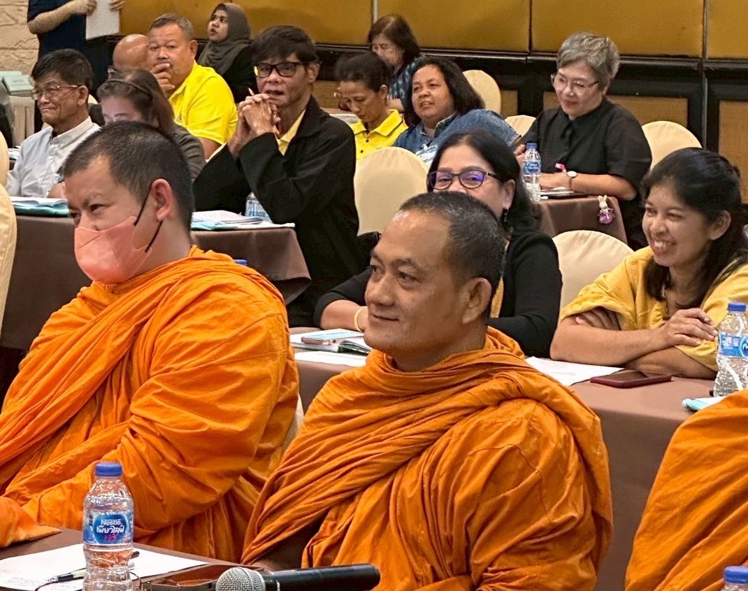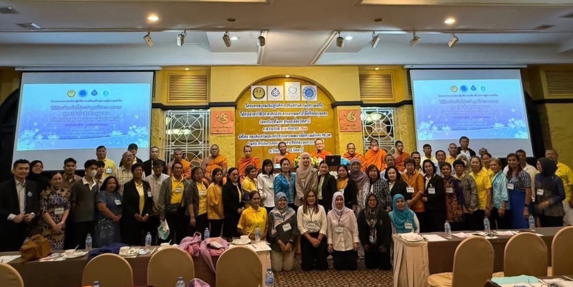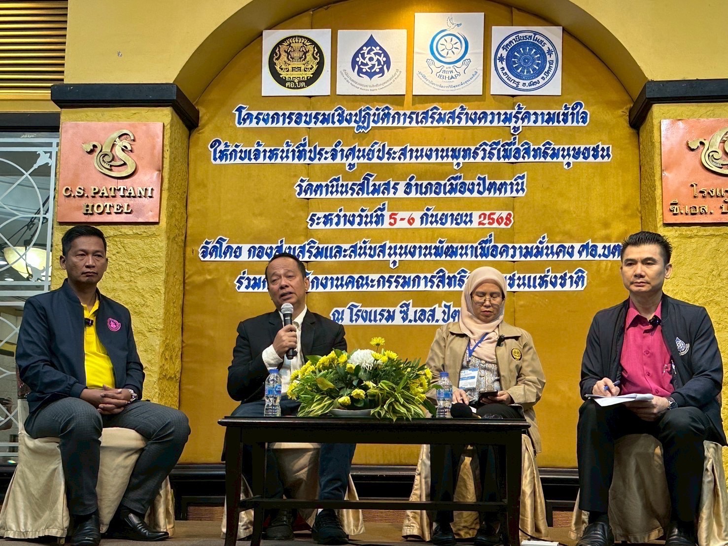 เมื่อวันที่ 5 - 6  กันยายน 2568 สำนักงานคณะกรรมการสิทธิมนุษยชนแห่งชาติพื้นที่ภาคใต้ (สำนักงาน กสม. พื้นที่ภาคใต้) ร่วมกับศูนย์อำนวยการบริหารจังหวัดชายแดนภาคใต้ (ศอ.บต.) มูลนิธิสถาบันการจัดการวิถีพุทธเพื่อสุขและสันติ (มูลนิธิ สกพ.) และวัดตานีนรสโมสร (พระอารามหลวง) อำเภอเมืองปัตตานี จังหวัดปัตตานี จัดโครงการอบรมเชิงปฏิบัติการเสริมสร้างความรู้ความเข้าใจให้กับเจ้าหน้าที่ประจำศูนย์ประสานงานพุทธวิธีเพื่อสิทธิมนุษยชน วัดตานีนรสโมสร ณ ห้องน้ำพราว โรงแรม ซี.เอส. ปัตตานี อำเภอเมืองปัตตานี จังหวัดปัตตานี